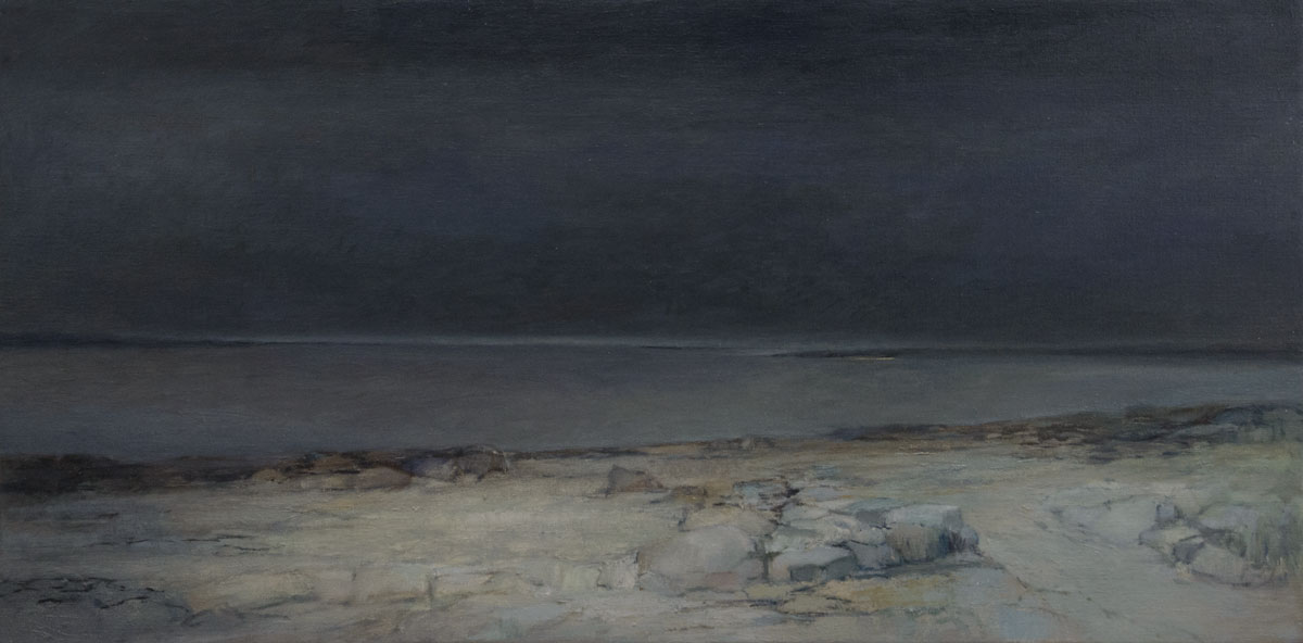 bretonse kust bij avond, 2024, olieverf/linnen, 100 x 50 cm