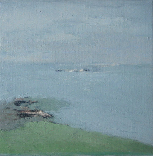 schijnen van de zon in 't water en 't schuiven der witte wolken.